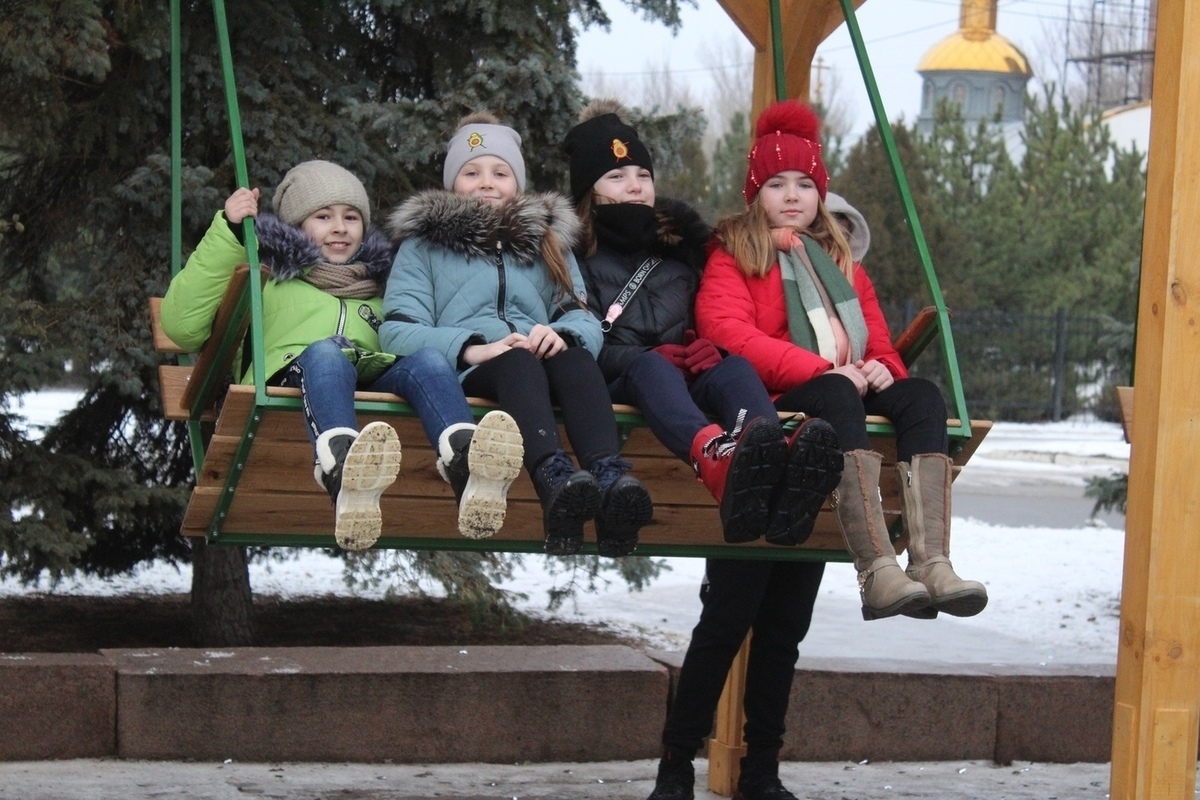 Дети, которые присутствовали на празднике, уже опробовали новые качели, а также поиграли с Дедом Морозом и Снегурочкой и получили сладкие подарки.