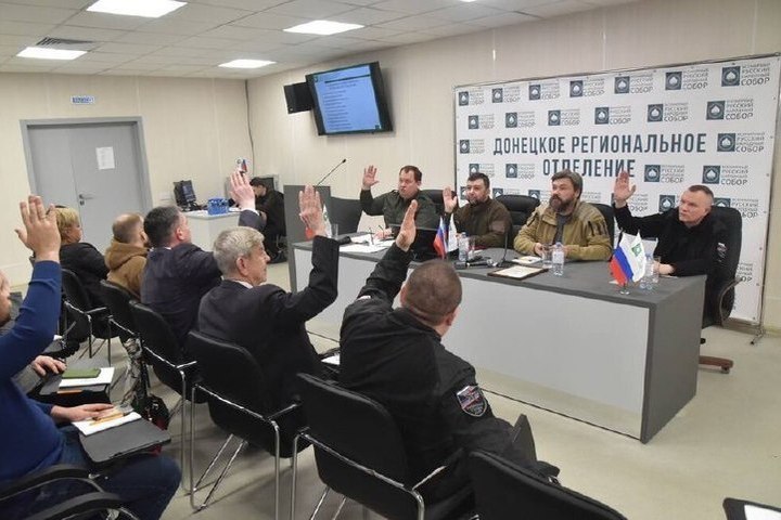 Сегодня и состоялась встреча, посвященная образованию регионального формирования, на котором Пушилин донес членам собрания, что единство России выражается в освобождении и восстановлении Донбасса.