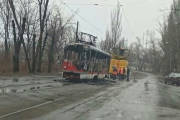 В Донецке сгорел трамвай
