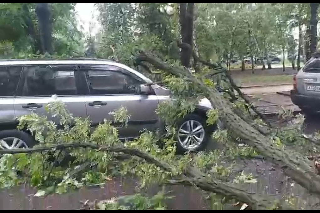 В районе Художественного музея на бульваре Пушкина на машину упало дерево. Очевидцы сообщают, что оно было сгнившим под корень. Неблагоприятные погодные условия ускорили падение дерева.