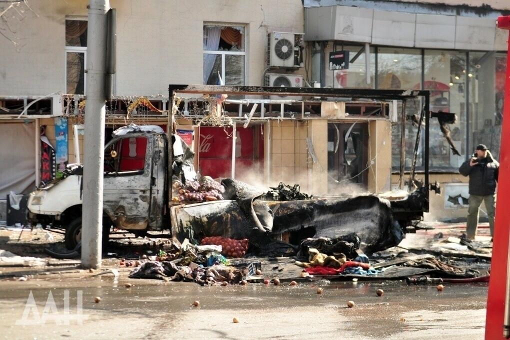 В пресс-центре МЧС ДНР сообщили о повреждениях 15 зданий и 56 автомобилей в центре Донецка по ул. Артема, Университетской, бульварам Пушкина и Театральному, которые оказались в зоне падения обломков «Точки-У».