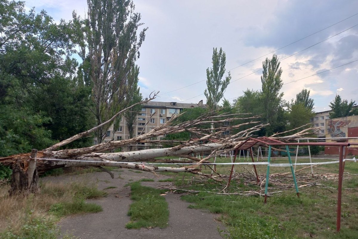 От порыва ветра в центре Донецка упало дерево.