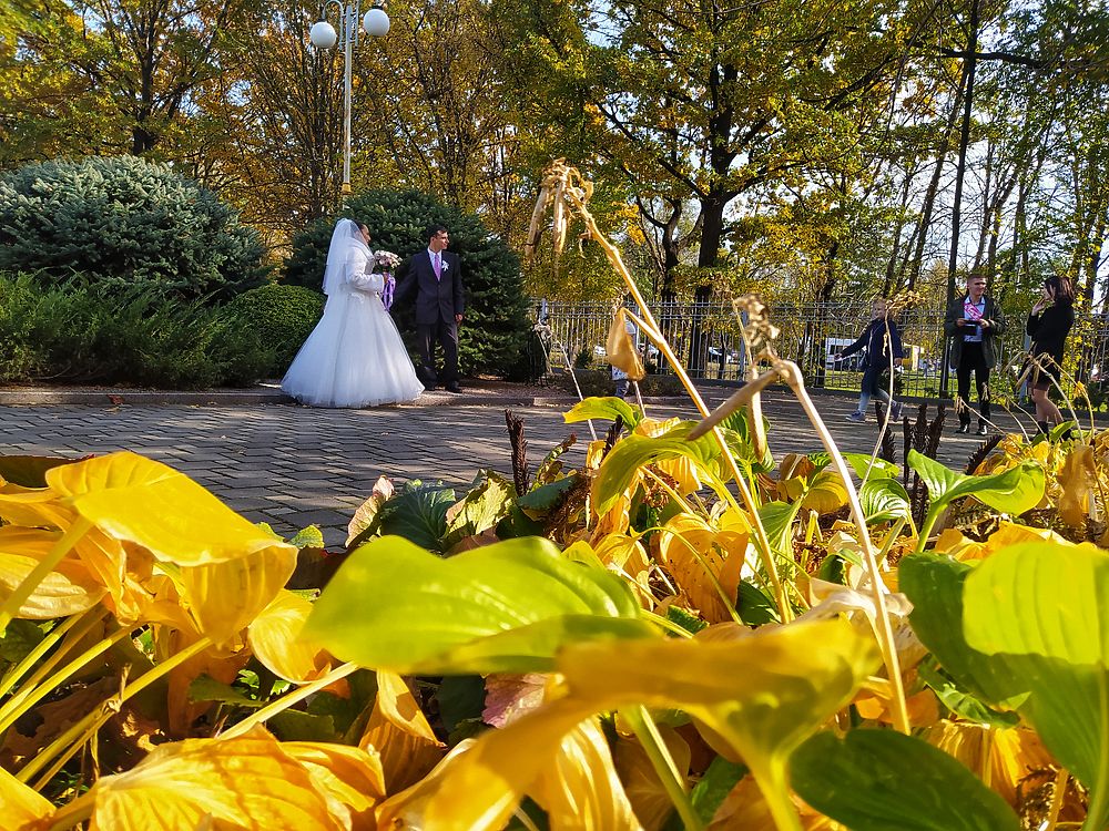 Стоит отметить, что донецкий ботанический сад сейчас находится на пике осенней красоты. Там проводят семейные и свадебные фотосессии и просто гуляют всей семьей. Малыши резвятся в желтых листьях, а взрослые коротают время на лавочках под осенним солнышком.