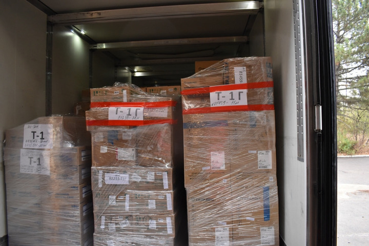 До распределения гуманитарной помощи по медицинским учреждениям Республики содержимое конвоя будет разгружено на склады в Донецке.