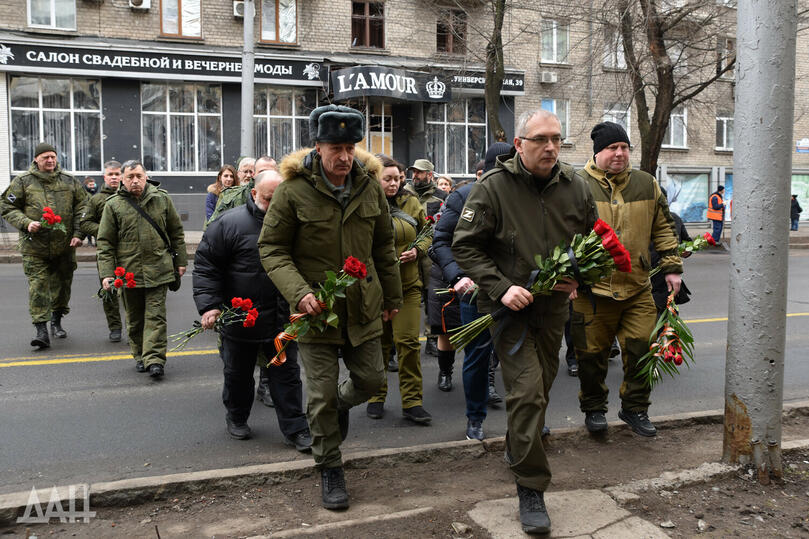 Почтить память погибших прибыли и первые лица государства, включая Главу ДНР Дениса Пушилина.
