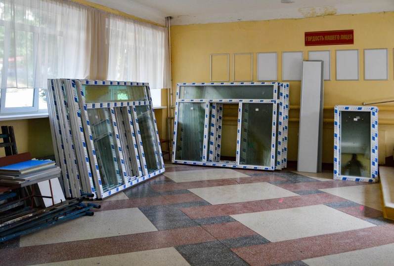 Сейчас в лицее идут восстановительные работы. Замены все разбитые окна, ремонтируются изрешечённые осколками стены.