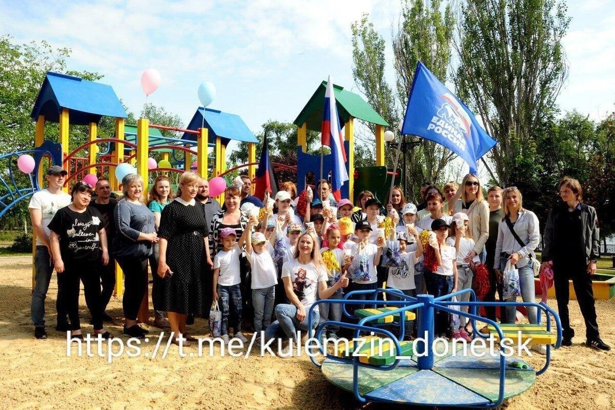 Глава Администрации Донецка Алексей Кулемзин на своем телеграм-канале сообщил о новой детской площадке, на которой сегодня прошло торжественное открытие.