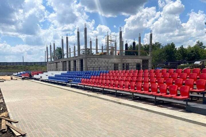 На стадионе «Шахтер» в Брянке Луганской Народной Республики устанавливают новые трибуны для зрителей. В работах задействованы специалисты «Единого заказчика в сфере строительства» и подрядчики.