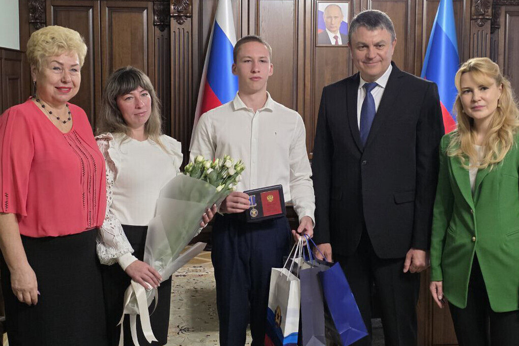 Одиннадцатиклассник Игорь Заворотнюк из поселка Ольховое Станично-Луганского муниципального округа удостоен памятной медали «За проявленное мужество». Награду подростку вручили Глава ЛНР Леонид Пасечник и сенатор Ольга Бас от имени Совета Федерации РФ.