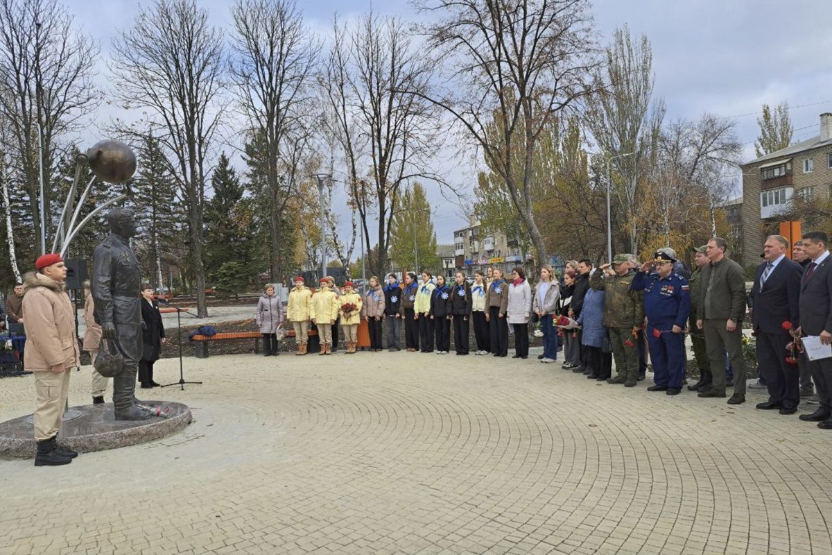 В сквере имени Владимира Ленина города Шахтёрска состоялась торжественная церемония открытия памятника прославленному летчику-штурмовику и космонавту Георгию Береговому. Мероприятие прошло при поддержке местного отделения партии «Единая Россия».